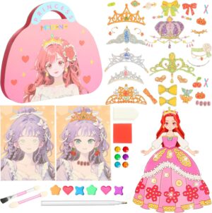 Art and Craft for Kids Girls Gift: DIY Paper Craft Kit with Diamond Painting Princess Dress Up Set – Birthday Gifts for Girls Ages 4 5 6 7 8 9 10 11 12 4-8 4-6 6-8 8-10 9-12 Year Old