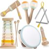 - Variety of Instruments: The set includes a modern xylophone and other percussion instruments, helping children learn tones and rhythms while developing their musical perception.