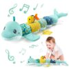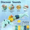 Infant Baby Musical Plush Toys, Stuffed Animal Activity Soft Toys with Multi-Sensory Crinkle, Rattle and Textures for 0-3-6-12 Months Developmental Toys, Dolphin, Water Dinosaurs, Blue