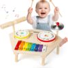 Kids Drum Set for Toddlers 1-3, Baby Preschool Musical Toys 7 in 1 Montessori Instruments Set Wooden Music Toy Baby Drum Kit Xylophone Birthday Gifts for Boys Girls