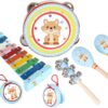 Kids Musical Instruments Sets, 12pcs Wooden Percussion Instruments Toys Tambourine Xylophone for Kids Playing Preschool Education, Early Learning Musical Toys for Boys Girls Gift (Blue)