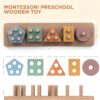 Hongyun Toys for 18+ Months Old – Toddlers Wooden Sorting and Stacking Toys for Baby Boys and Girls – Shape Sorter and Color Stacker Preschool Kids Wood Gifts